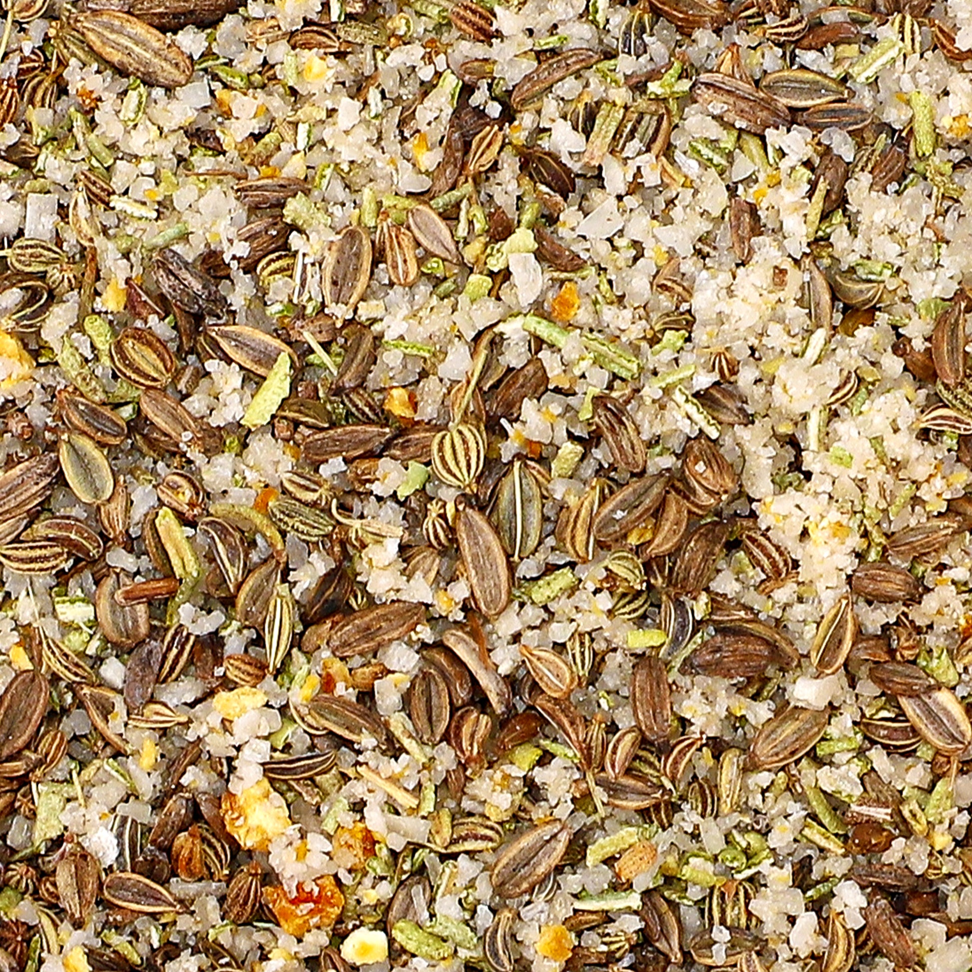 Aromatic lives up to its name by combining textured sea salt with flavorful California-grown fennel and parsley seed, classic rosemary, ajowan, a tiny seed with thyme-like flavor, and citrusy orange peel. Together, they create a rounded taste bursting with scent and dynamism. Use in anything you want to savor longer, especially roasted chicken, dressings, tomato sauce, and whitefish.